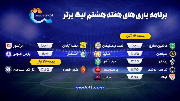 اعلام برنامه بازی های هفته های هفتم و هشتم لیگ برتر