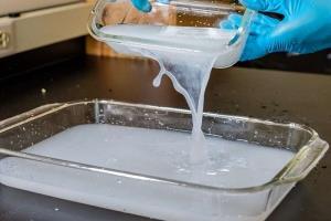 این گروه پژوهشی الیاف چوب را که منشأ آن ضایعات جنگلی است، در محلولی از هیدروکسید سدیم سرد همراه با مخلوط مکانیکی ملایم تجزیه، سپس هیدروکسیدسدیم را بازیافت میکنند و یک غشای شفاف، قوی و مقاوم در برابر آب بهدست میآورند.
