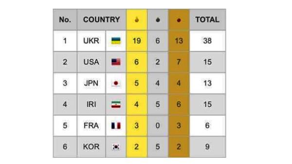 در جدول پایانی بازیها اوکراین با کسب مدال ۵۶ طلا، ۳۶ نقره، ۳۷ برنز و مجموع ۱۲۹ مدال صدرنشین شد و آمریکا با ۱۹ مدال طلا، ۱۰ نقره، ۲۲ برنز و مجموع ۵۱ مدال در رده دوم قرار گرفت.
